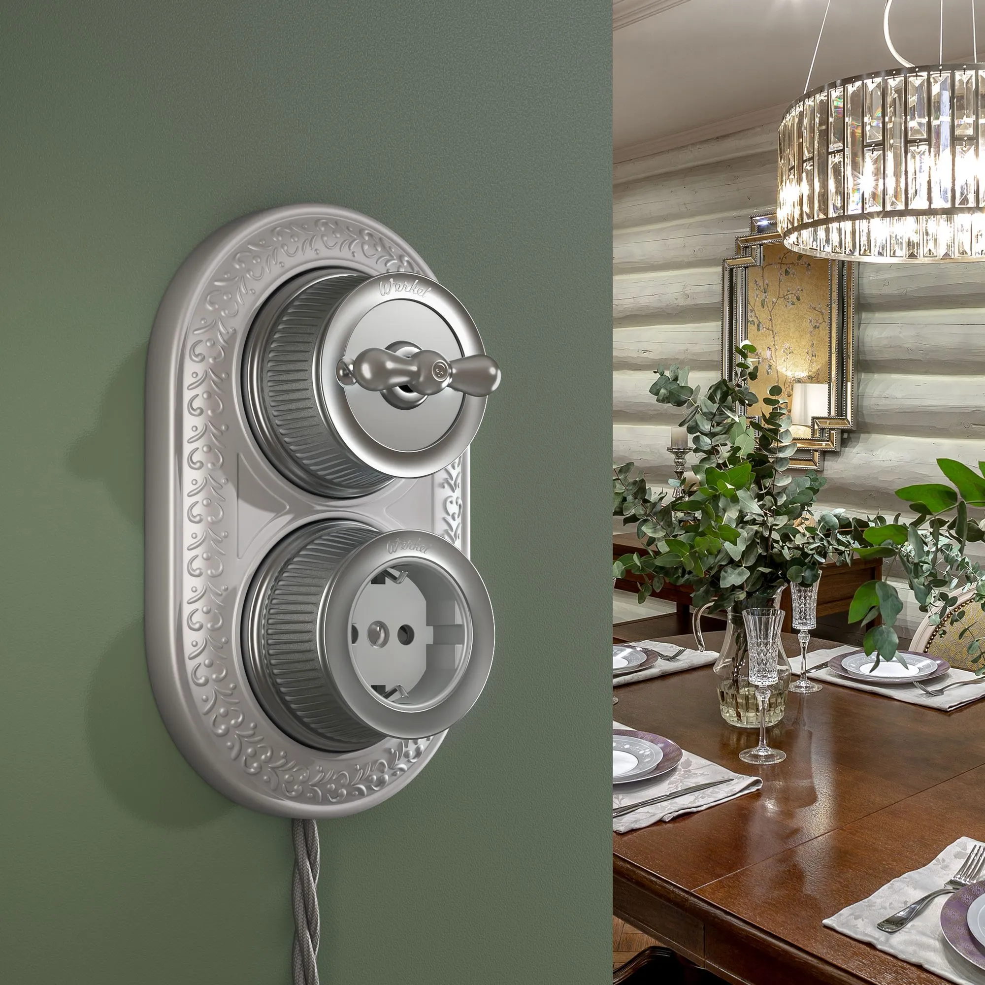Розетка с заземлением ретро от Werkel – это уникальное сочетание винтажного дизайна и современных технологий. Этот аксессуар идеально впишется в интерьеры, оформленные в стиле лофт, классика или ретро, придавая помещению особый шарм и атмосферу старины.