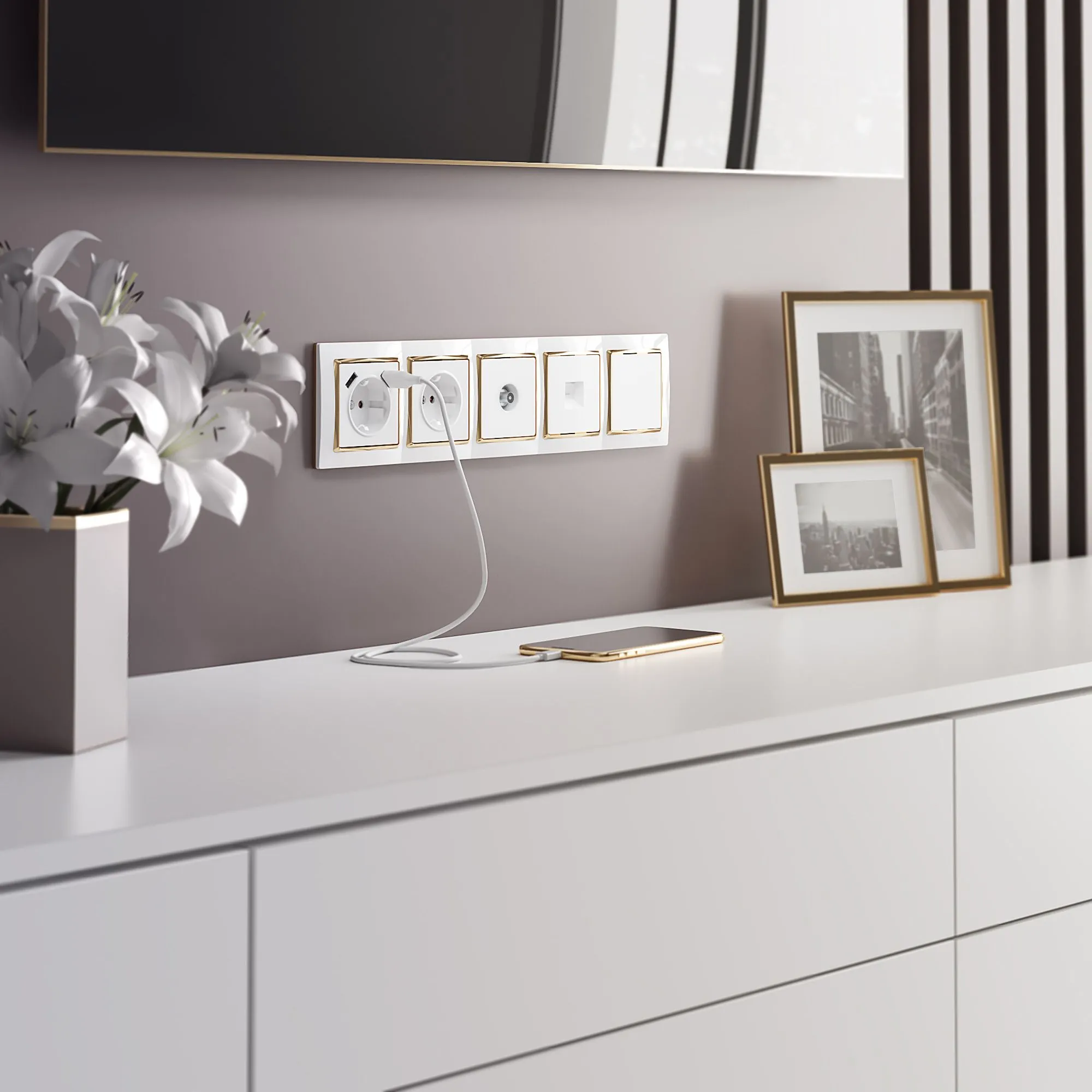 Встраиваемая телефонная розетка RJ-11 совместима со всеми рамками из ассортимента Werkel.