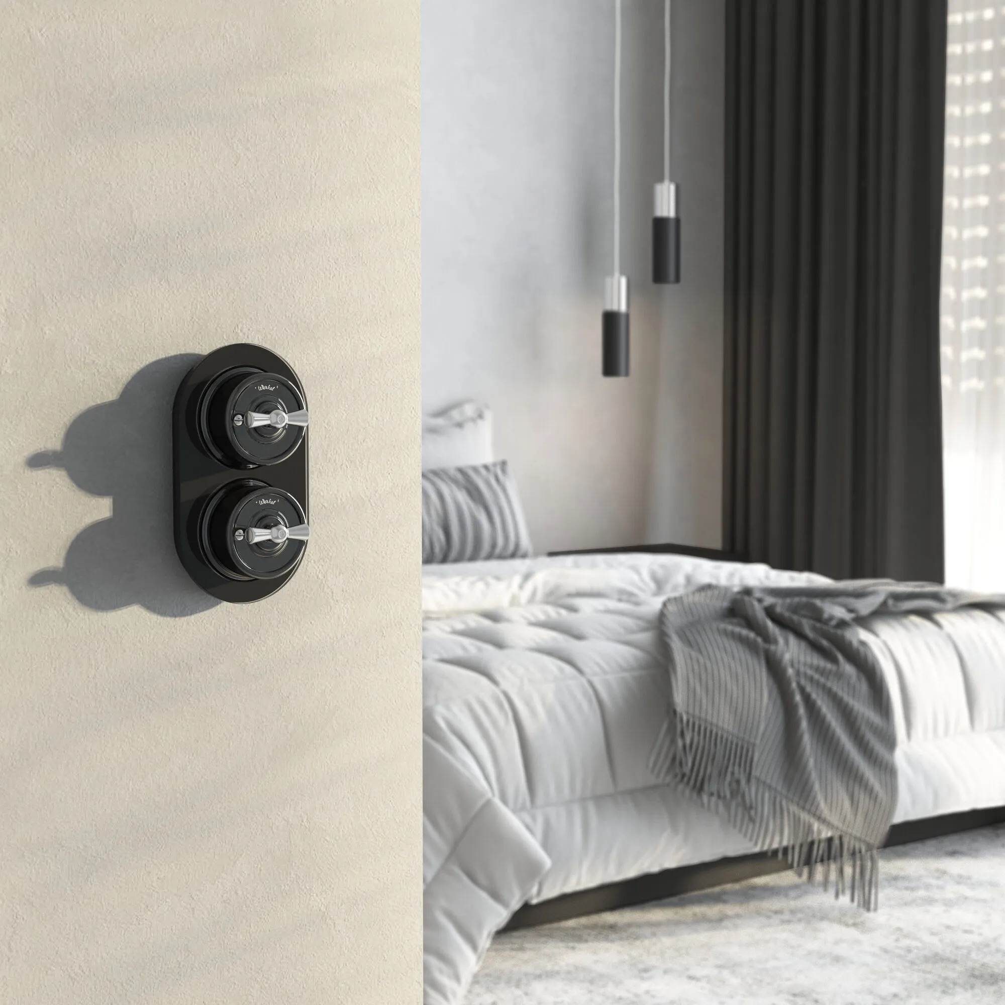 Серия Retro — это дань эпохам, когда розетки были частью декора. Хотя она чаще ассоциируется с 50–70-ми, её элегантные формы и керамические/стеклянные элементы отлично работают и в неоклассике.