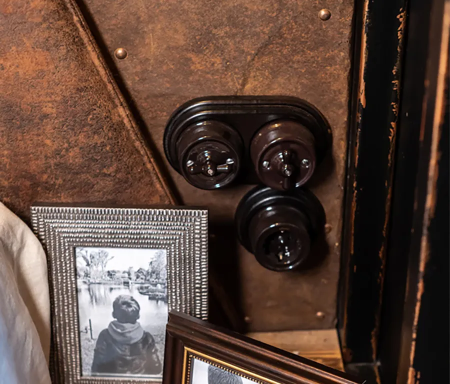 • Удобство монтажа: конструкция ретро-розеток и выключателей позволяет устанавливать их как с открытой, так и со скрытой проводкой без использования декоративных рамок.