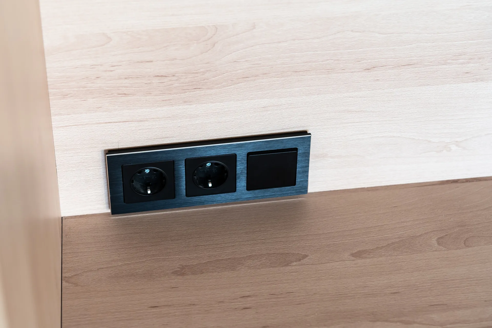 Для проекта были выбраны рамки и механизмы торговой марки Werkel™, которые гармонично дополнили обновленный интерьер. Металлические рамки из серии Aluminium с декоративной шлифовкой и зеркальной фаской по краям стали стильным акцентом. Черные матовые лицевые панели механизмов сочетаются со строгими рамками, создавая единую цветовую гамму, которая идеально вписывается в современный дизайн помещения .